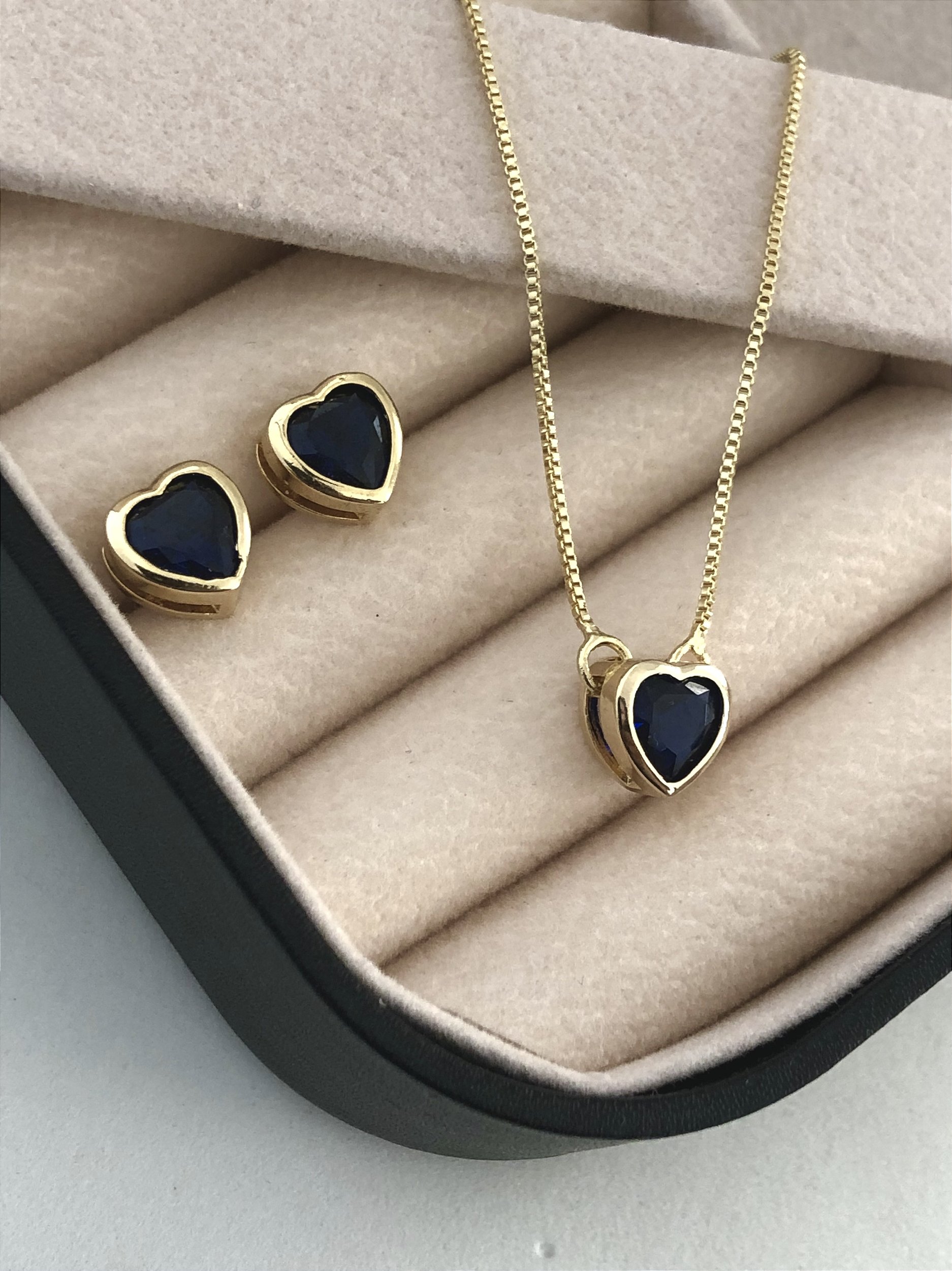 Conjunto de coração pedra azul marinho.
