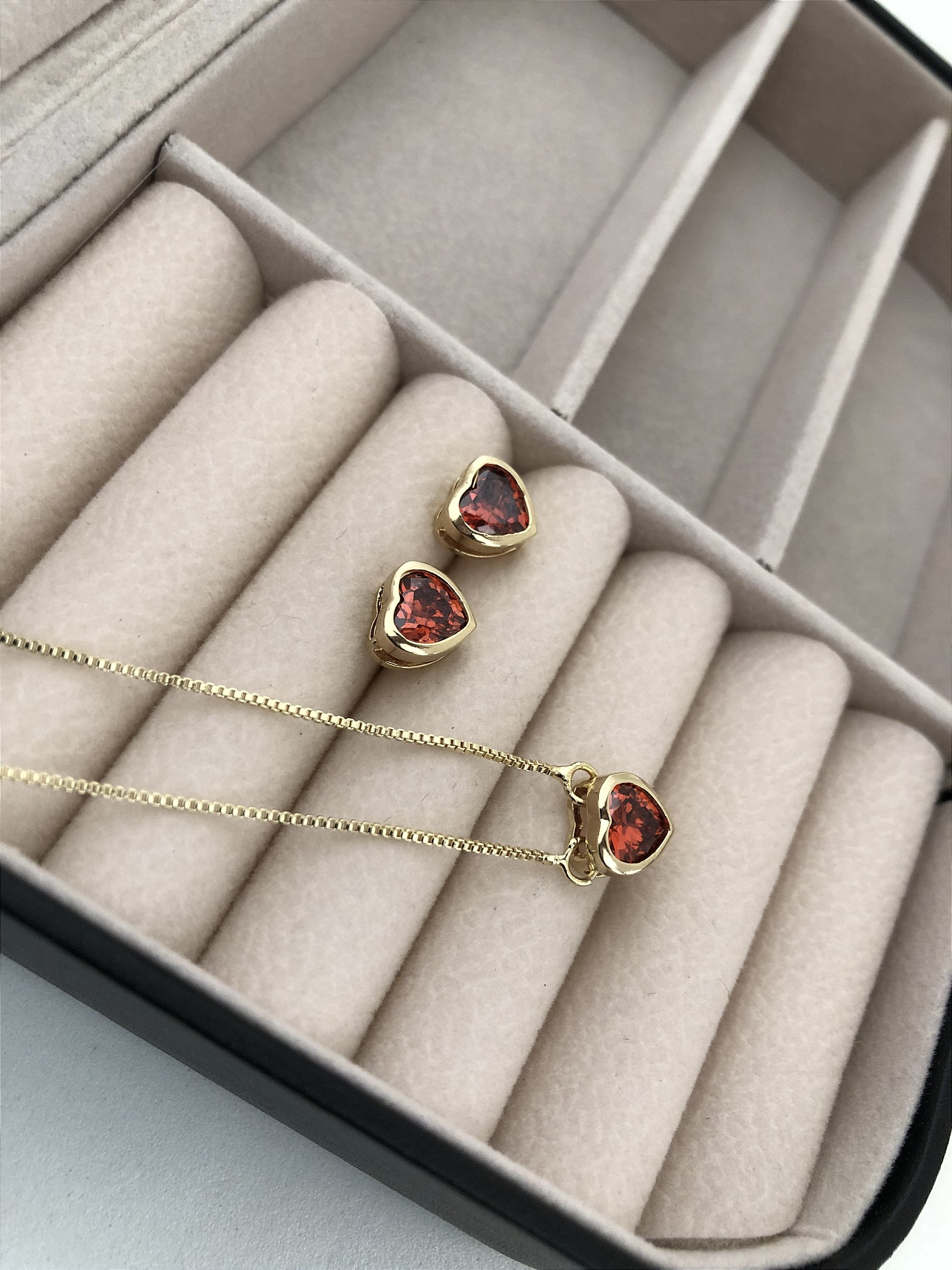 Conjunto de coração pedra embutida nas cores( verde, vermelho, azul)